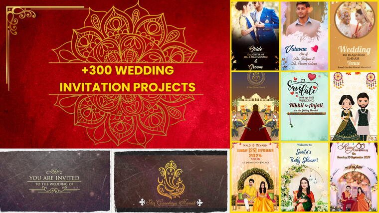 Celebrate your event in style with our beautiful traditional wedding invitation projects, engagement, HOUSE WARMING invitation, Birthday Invitation, Baby shower and Many More created in After Effects and Premiere Pro!